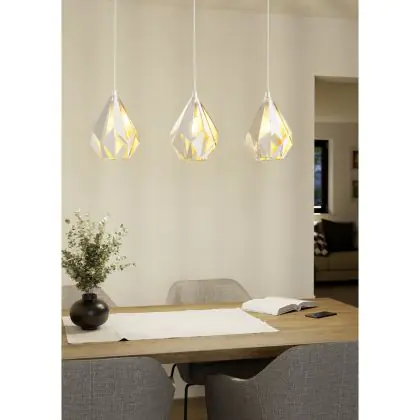 Eglo Pendelleuchte Carlton 1 Stahl Weiß Gold | IP20 - Geeignet für 3x E27
