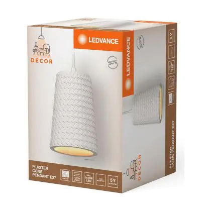 Ledvance Decor Gips/Stahl Cone Pendelleuchte Weiß | Geeignet für E27