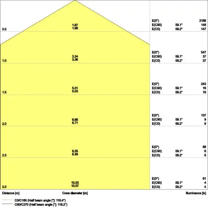 ![]() Der IP-Wert zeigt an, wie gut das Leuchtmittel gegen das Eindringen von Feuchtigkeit und Staub geschützt ist. Die erste Ziffer gibt den Schutz gegen Staub an: von 0 = „gar keinen Schutz“ bis 6 = „komplett staubdicht“. Die zweite Ziffer zeigt den Schutz gegen Feuchtigkeit an: von 0 = „gar keinen Schutz“ bis 8 = „geschützt gegen Untertauchen“. Daraus resultiert: Produkte mit einer IP44-Schutzklasse sind vor Spritzwasser geschützt, Produkte mit IP65 oder höher sind (komplett) staub- und wasserdicht. |