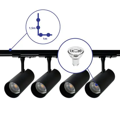 | Nom du fabricant | Complete L shaped 1-Phase Track Set Black incl. 4x Spot fixture + GU10 2700K 3W Dim - 1 x 1,5 meter | |