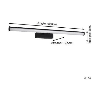 Description Eglo Applique Murale Vadumi Noir Éclairage de salle de bains 11W 1350lm - 840 Blanc Froid | IP44