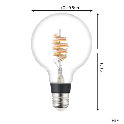 Cette ampoule Eglo Connect.Z Smart LED Globe E27 Filament Claire 4.9W 400lm - 830 Blanc Chaud + RGB | Dimmable - Remplacement 40W avec son efficacité lumineuse de lumen par watt vous permettra de profiter d’un éclairage de qualité. Avec sa durée de vie de 15000 heures, vous n’aurez pas à vous soucier de son remplacement avant quelques années.