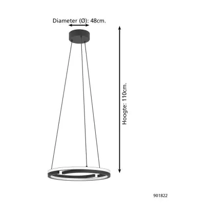 Eglo Suspension Luminaire Mezzomonte Aluminium Échantillon Noir 20W 1600lm - 827-865 Accordable Blanc | IP20 - Dimmable