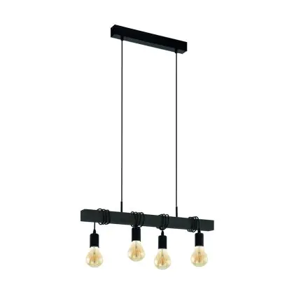 Eglo Suspension Luminaire Townshend Échantillon Bois Noir | IP20 - Convient pour 4x E27