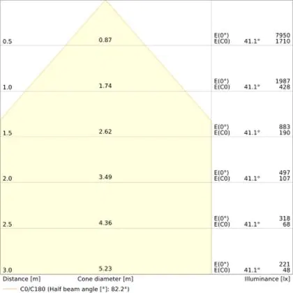 ![]() Le code couleur se compose de l'indice de rendu des couleurs (IRC) et de la température de couleur (Kelvin). Le premier chiffre indique le rendu des couleurs (1 = très mauvais rendu des couleurs, 9 = meilleure authenticité des couleurs). Le deuxième et troisième chiffre indiquent la température de la couleur. Exemple : Le code couleur "830" indique que la lampe a un bon rendu des couleurs (8) et une couleur de lumière blanche chaude (30 = 3000K). |