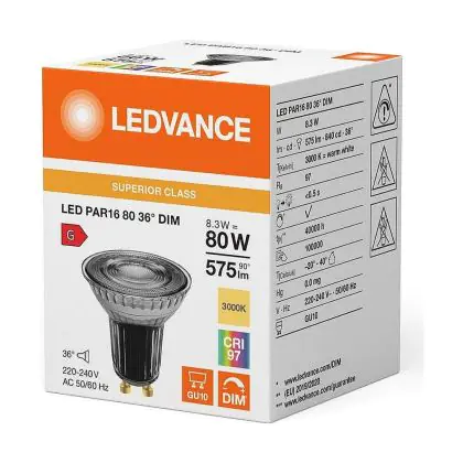 Description Lot 10x Ledvance LED PAR16 GU10 Réflecteur 8.3W 575lm 36D - 930 Blanc Chaud | Meilleur Rendu De Couleur - Dimmable - Remplacement 80W