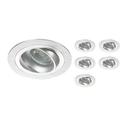 Lot 6x Encastré Spot Logic MR16 inclinable Aluminium | Diamètre 80mm - GU10 Culot est un spot LED encastrable. Ce luminaire est conçu pour un éclairage d’accentuation pour un usage domestique ou bien professionnel. Fixture Retrofit, ce spot LED Budgetlight en Aluminium a besoin d’une place nécessaire de 80mm de largeur et 75mm de profondeur. Ce luminaire est compatible avec une ampoule GU10, il est important de faire attention si vous décidez de changer d’ampoule.