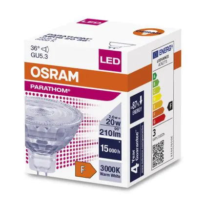 Description Osram Parathom Spot LED GU5.3 MR16 3W 230lm 36D - 830 | Remplacement 20W