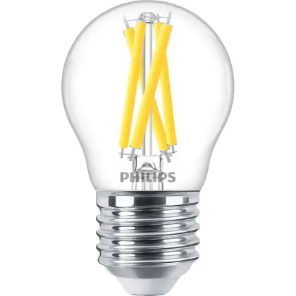 Cette ampoule Philips MASTER LED E27 Boule Filament Claire 3.5W 470lm - 922-927 Dim To Warm | Meilleur Rendu De Couleur - Dimmable - Remplacement 40W avec son efficacité lumineuse de lumen par watt vous permettra de profiter d’un éclairage de qualité. Avec sa durée de vie de 25000 heures, vous n’aurez pas à vous soucier de son remplacement avant quelques années.