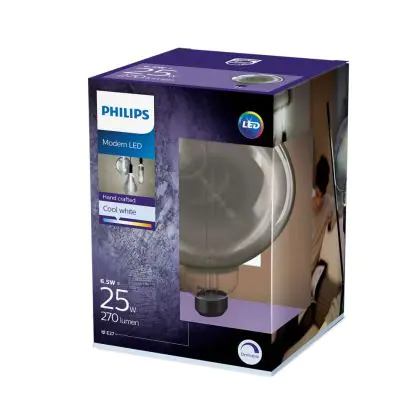 Cette ampoule Philips Vintage LED Globe E27 Gaint 200mm Filament Smoke 6.5W 270lm - 840 Blanc Froid | Dimmable - Équivalent 25W est l’alternative idéale pour la remplacement de votre ampoule classique de 25 W. La technologie LED intégrée vous offrira de nombreux avantages. Les ampoules à incandescence traditionnelles ont une durée de vie limitée. Cette alternative LED vous permettra de profiter d’un éclairage durable et fiable.
